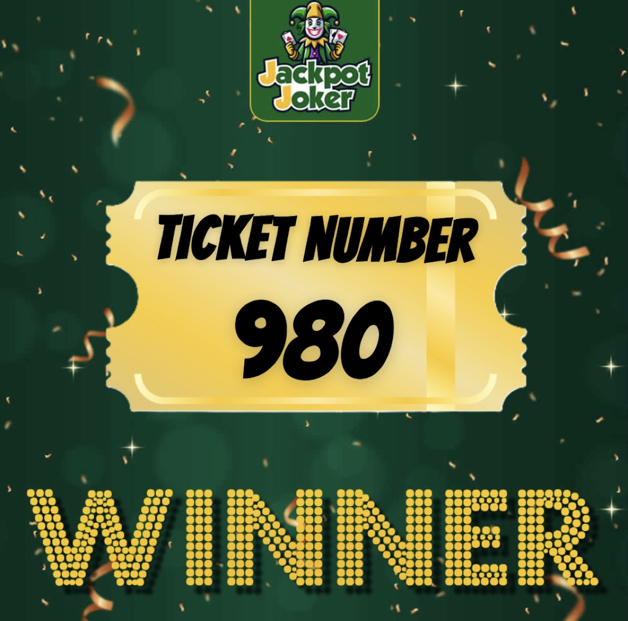 Winner announced on the live draw.